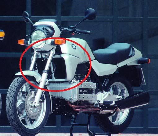 What you need is a VHTF (very hard to find) radiator shroud from a naked K100.