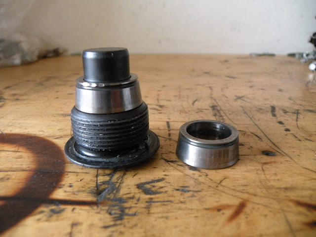 The most disturbing bit was the fact that the bit in the next picture had clear up and down play (the bit hanging out was fine, the uni-joint seems ok, but the bit that is deeper in the housing (the other fork of the uni joint) could move!)